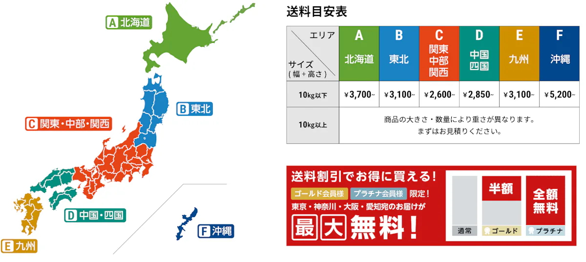 | エリア | ヤマト運輸 W+H=1400ミリ以内 |