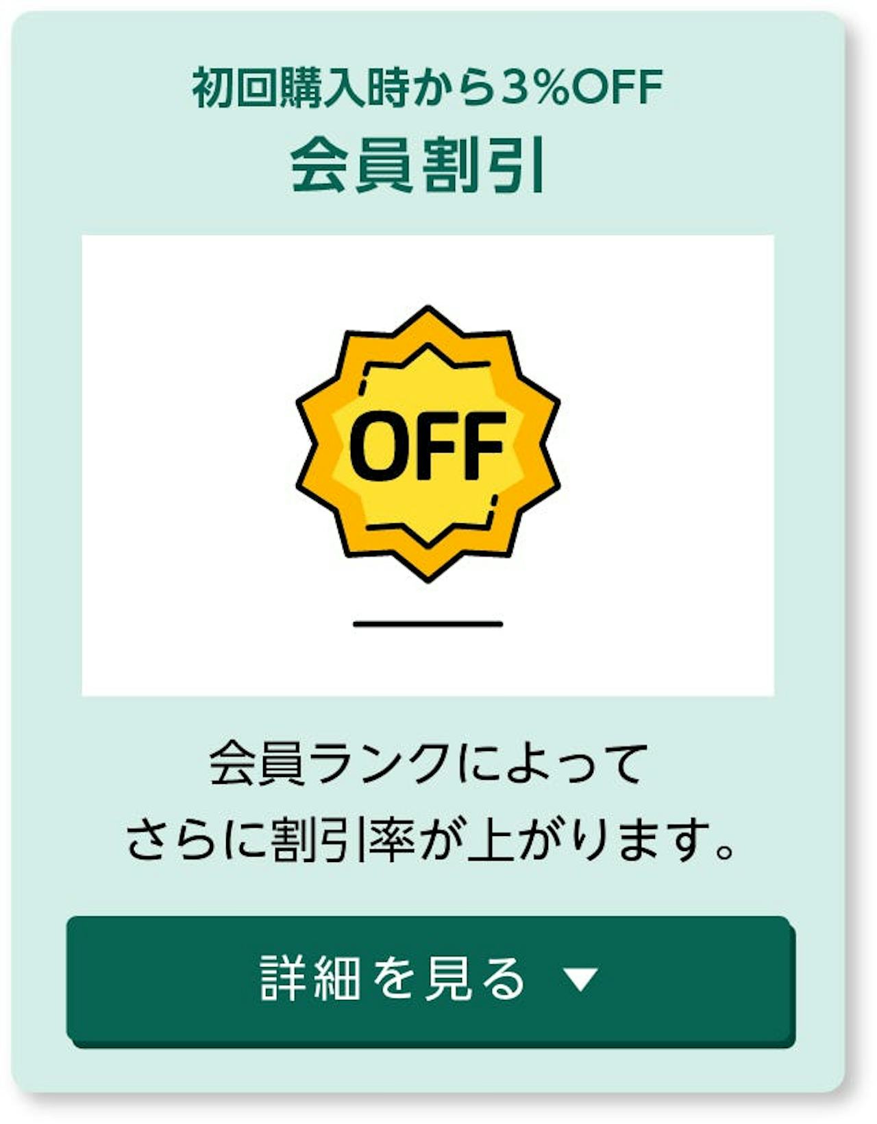 ご購入回数・ご購入金額によって会員ランクが上がり、割引率がアップします。